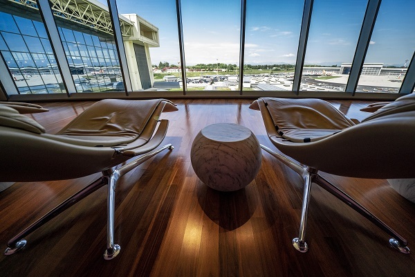 休息室专为非申根旅客设计,采用意大利制造的高雅设计,配有优雅的淋浴间和一流的自助餐。